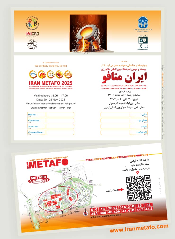 شانزدهمین نمایشگاه بین المللی متالورژی، فولاد،ریخته گری، ماشین آلات و صنایع وابسته اصفهان 6 الی 9 شهریور 1403.(1403/06/10) ادامه مطلب…