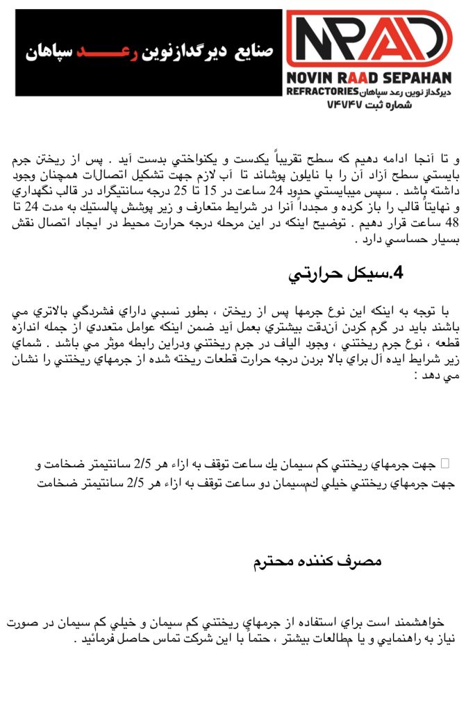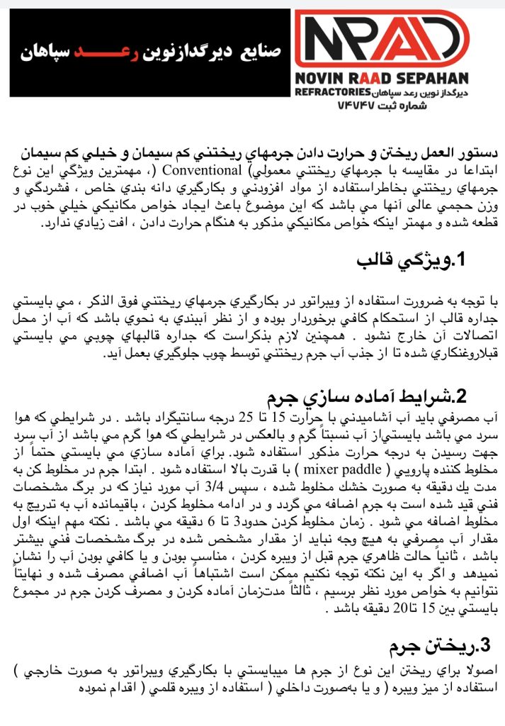 نصب و حرارت جرم های کوبیدنی نسوز به روش مرطوب